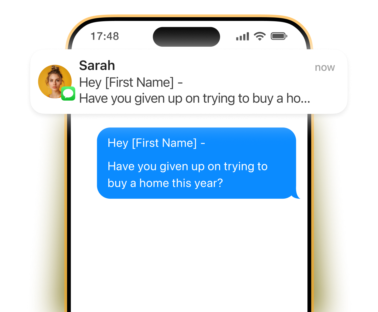 Now you follow up with a simple, targeted text. Lead with real proof: you just helped a buyer lock in a lower rate. That’s news worth sharing. Then extend a clear, personal offer: “Want to see what your monthly payment would look like at [%]?”