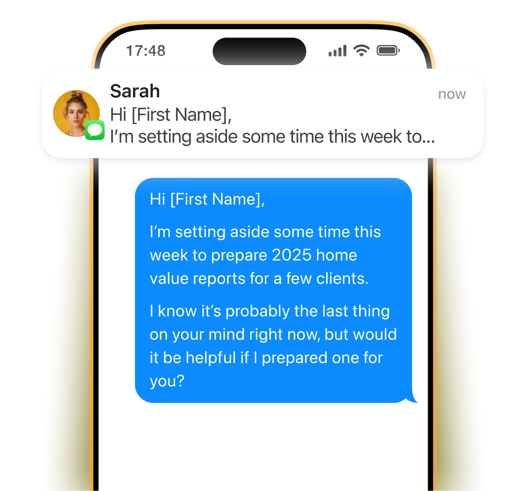 That’s what this text is for. It’s a simple 1:1 market update. Easy to digest. Personalized. Timely. And best of all—it gives you a natural reason to reach out at the start of each month.