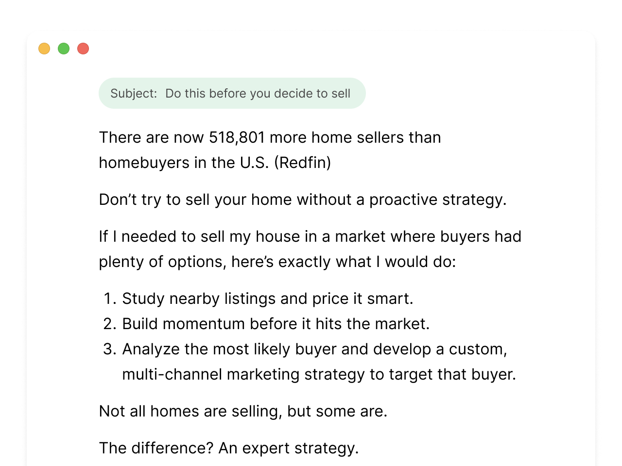 If they open the email, you know there’s a strong chance they’re serious enough to be wrestling with the decision, not just browsing listings for fun.
