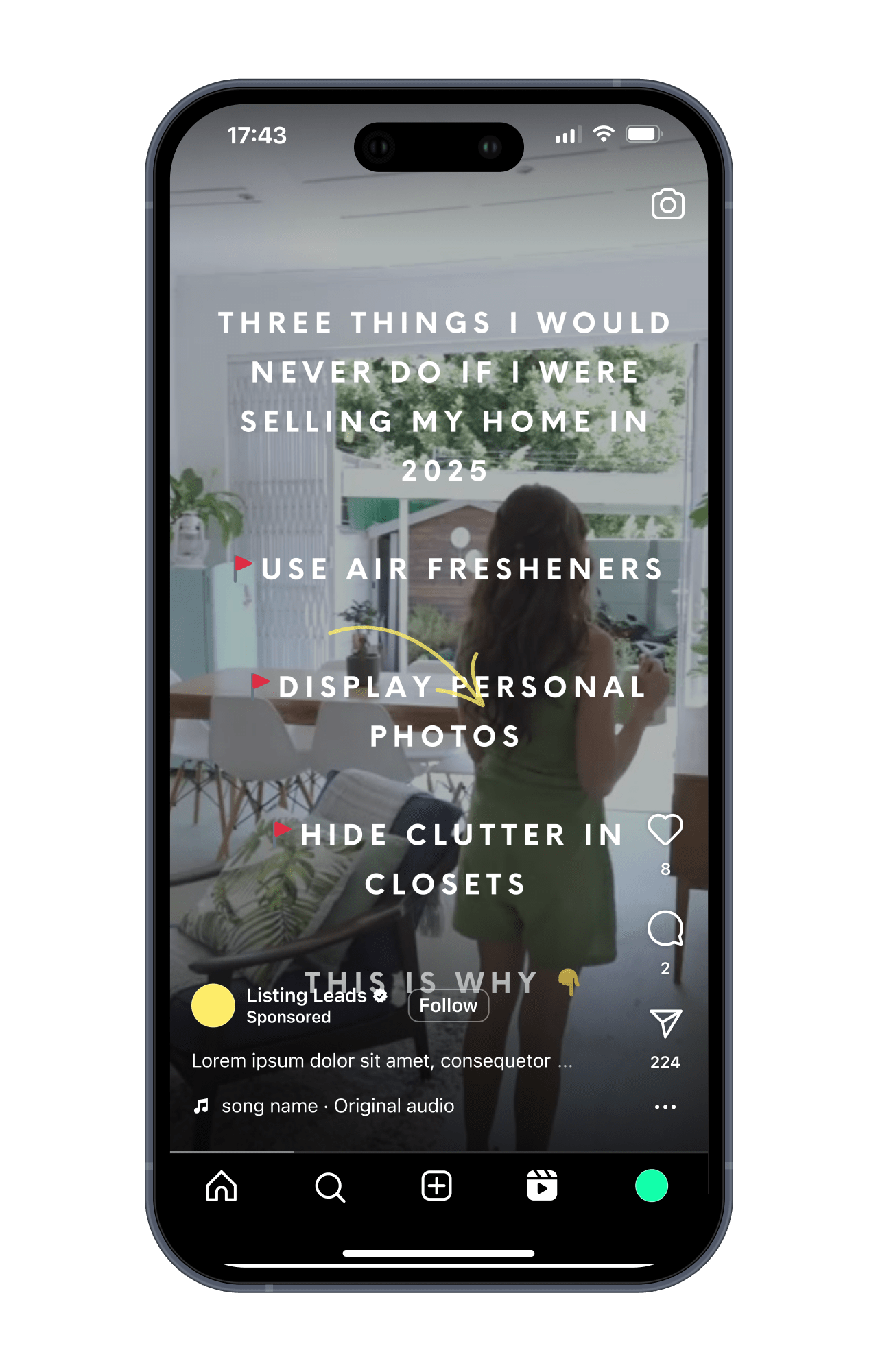 Inspired by Kate Howard’s Instagram Reel, this campaign gives you three simple, but often overlooked, mistakes sellers make that can quietly kill deals. Use it to educate your audience, position yourself as the expert who knows what works, and spark conversations with homeowners who want to get it right.