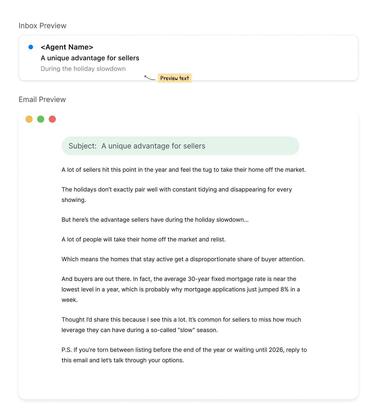 This timely campaign helps you show sellers the leverage hiding in the slowdown and guide them toward a clearer, more confident end-of-year decision.