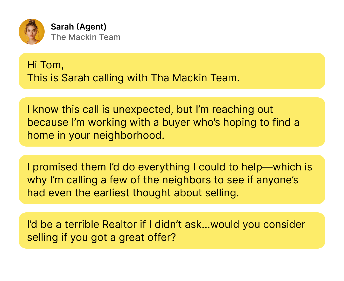 Use this call to open more doors, uncover hidden sellers, and stand out as the agent who’s willing to do the work most won’t.