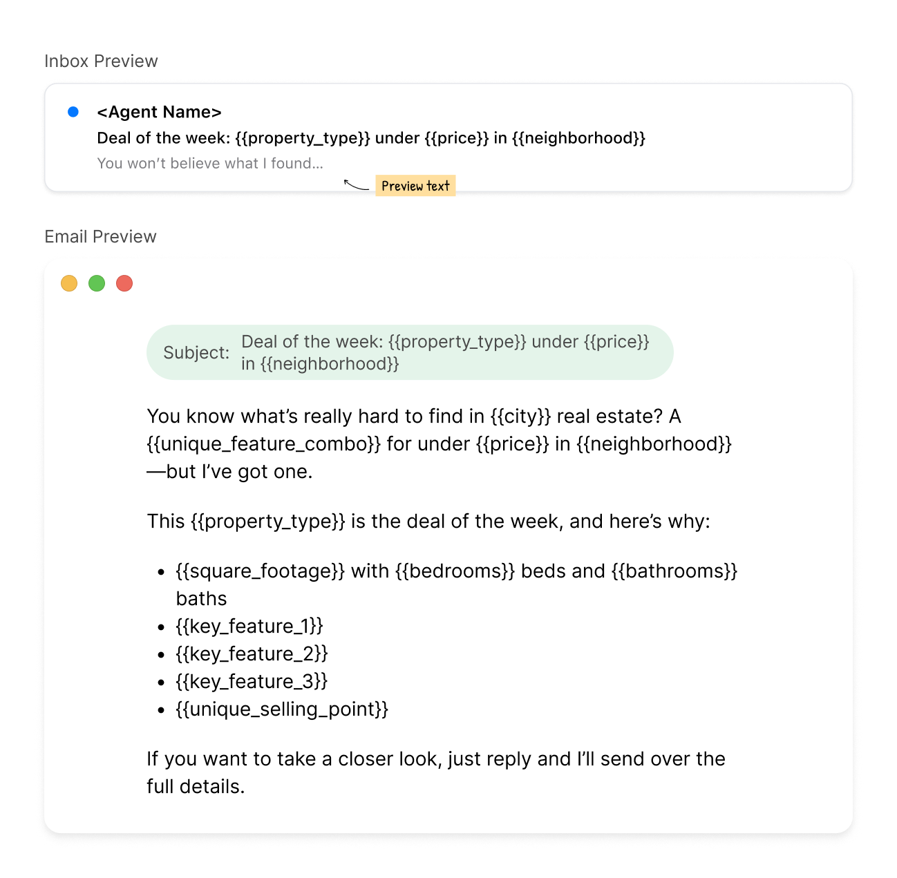 Use the template we provided below to send out your Deal of the Week, use this free tool to write the email and send it yourself, or get AI Mode to automate the entire process for you.