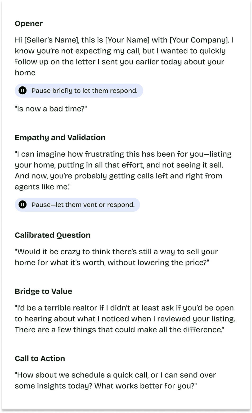 Use this script to disarm objections, build trust, and start conversations that lead to listings.