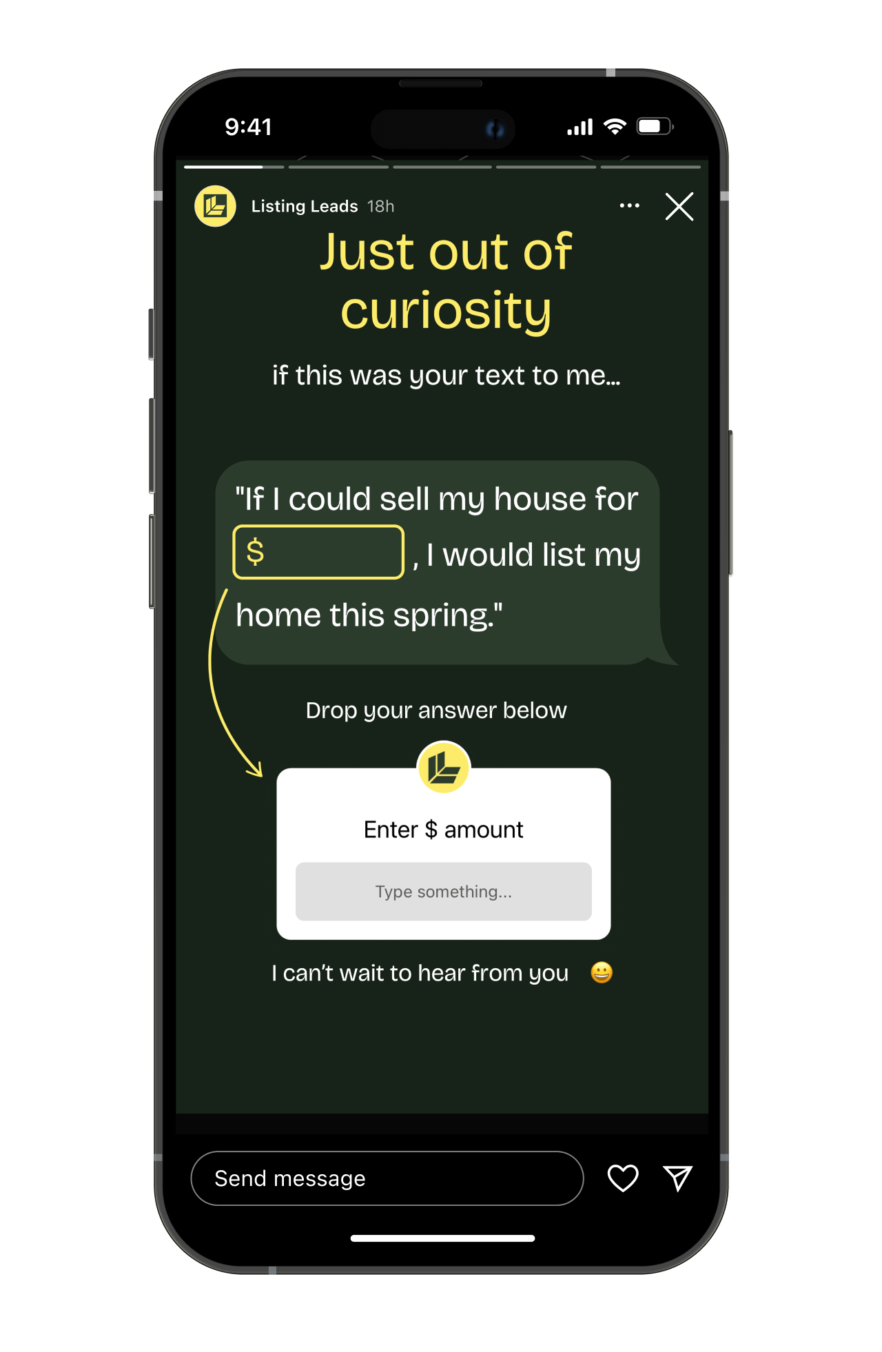 This campaign recently generated @modernchicagohomes over 15 high-intent seller leads from an Instagram Story. My advice is to be posting this 2-3 times a quarter.Â