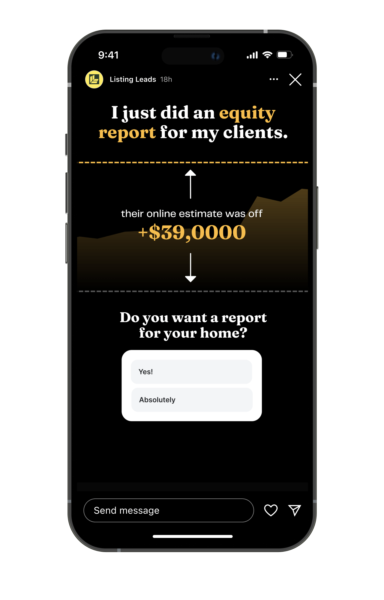 We already know unsolicited CMAs work. But the agents who consistently generate seller leads don’t stop there—they turn their best CMAs into social content that drives action. That’s why this IG poll is one of our top-performing shareables at ListingLeads.