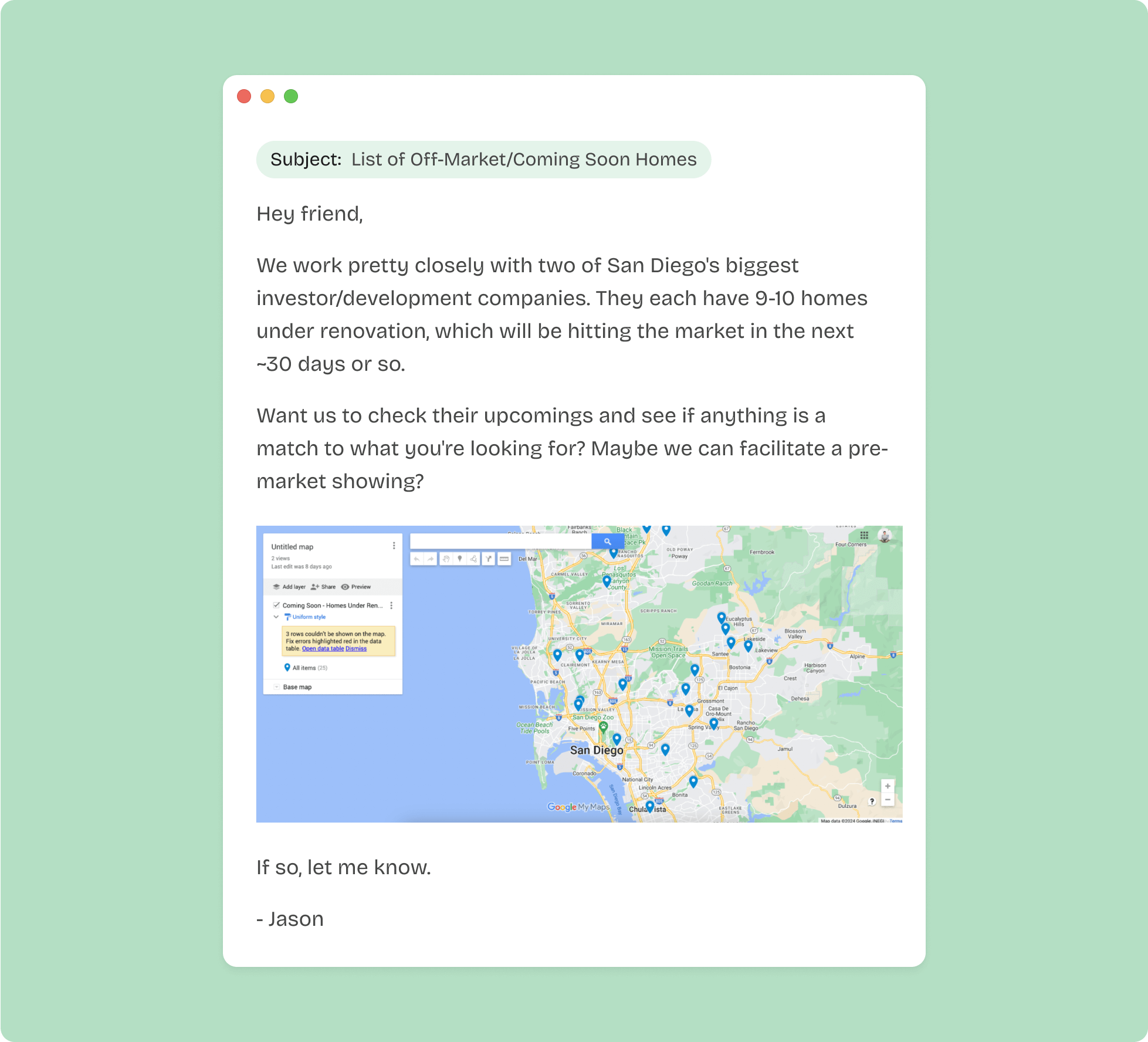 3. He ends with a casual CTA and offer to schedule a pre-market showing.