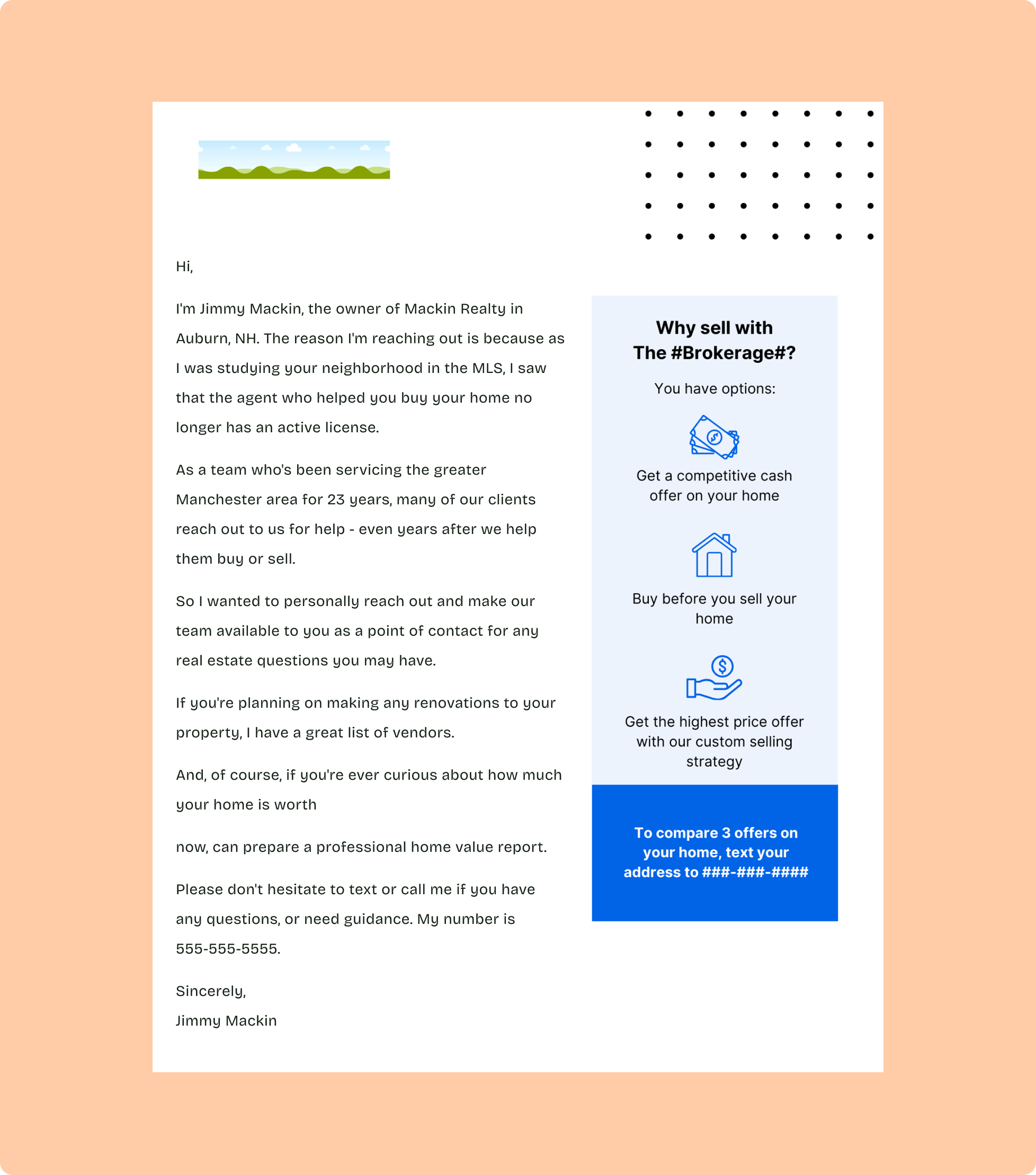 You need a platform that lets you send mass emails to your database. Use what you have—FUB, Follow Up Boss, Mailchimp, KVCore, Constant Contact, etc. If you’re not set up yet, get that handled first. You can’t send if you can’t hit send.