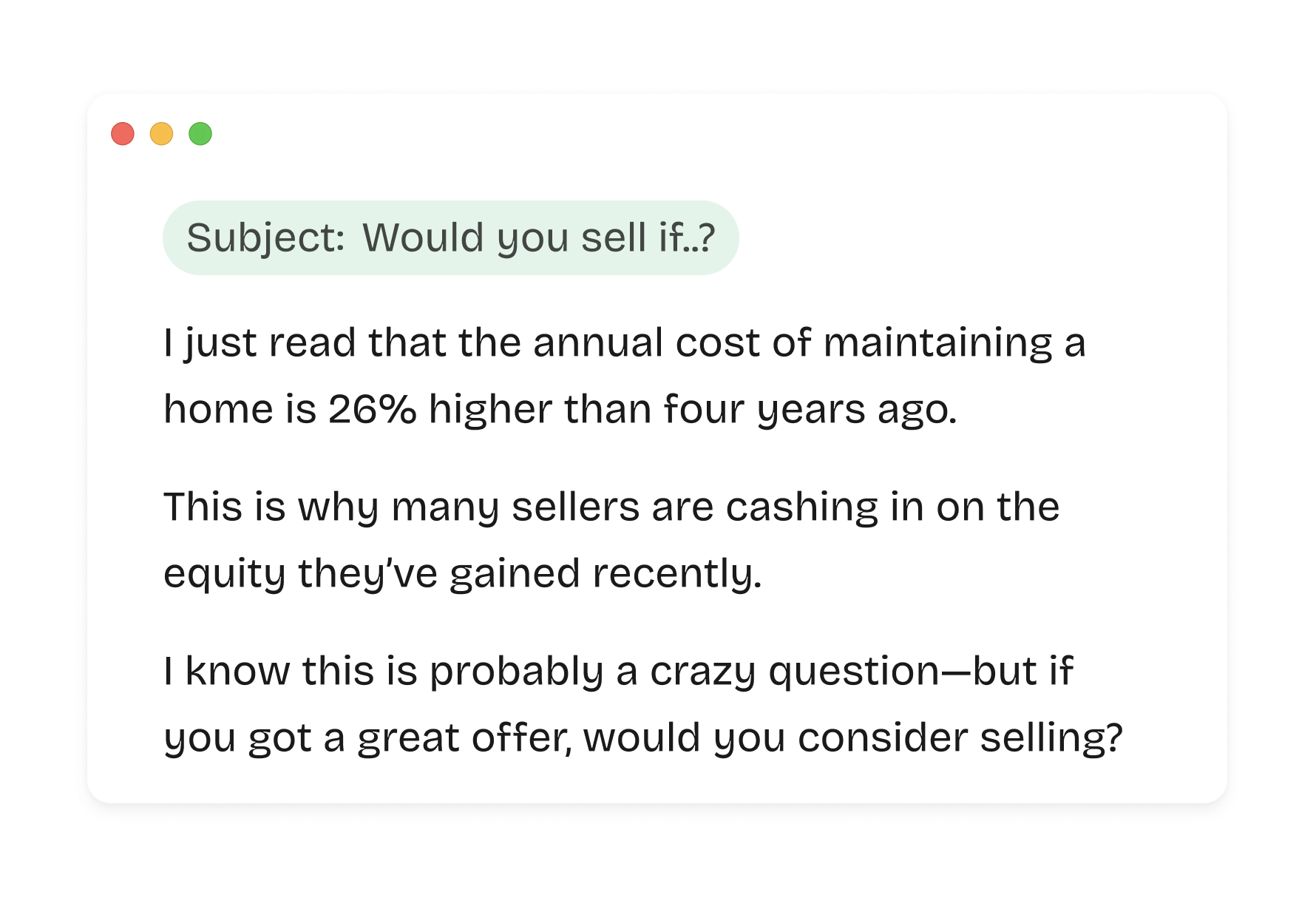 This campaign is designed to educated them and spark a conversation around selling their home.Â