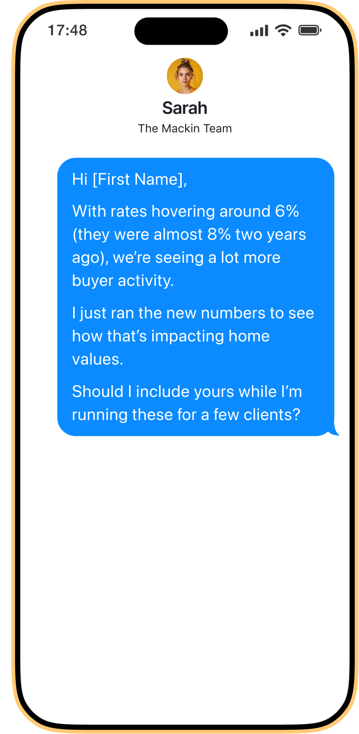 This text builds on that moment - with a home value angle. Send it to everyone who opened yesterday’s email.