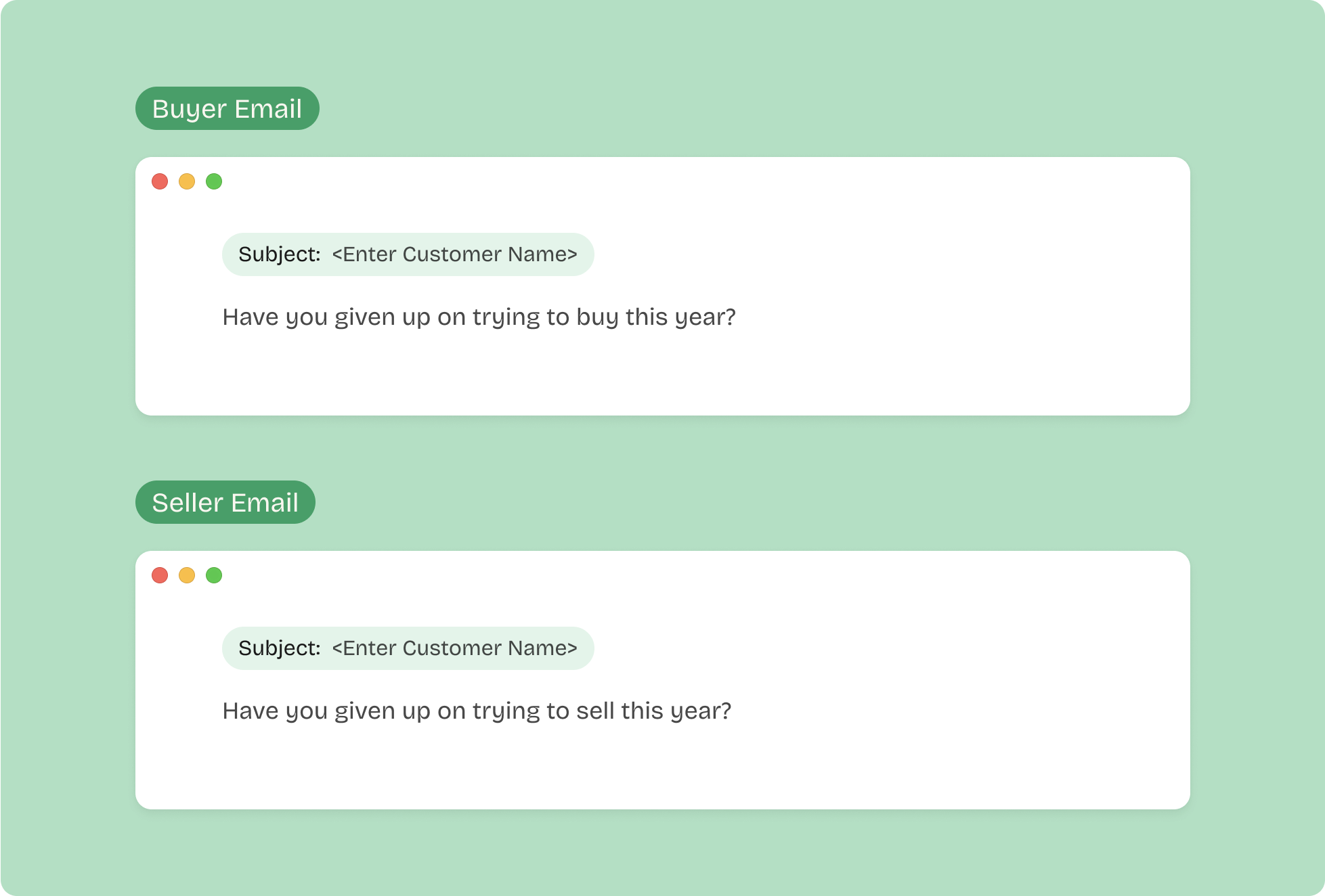 You need a platform that lets you send mass emails to your database. Use what you have—FUB, Follow Up Boss, Mailchimp, KVCore, Constant Contact, etc. If you’re not set up yet, get that handled first. You can’t send if you can’t hit send.