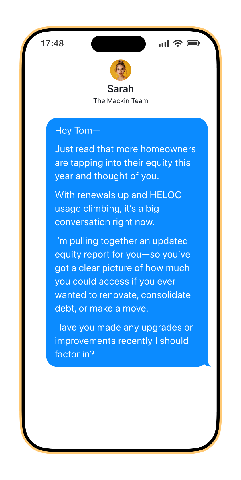 Reach out to 5–10 people in your sphere or past clients with a quick, personalized equity update—no ask, no pressure, just timely insight.The text below helps you start the conversation—and positions you as the steady, informed guide they want in their corner.