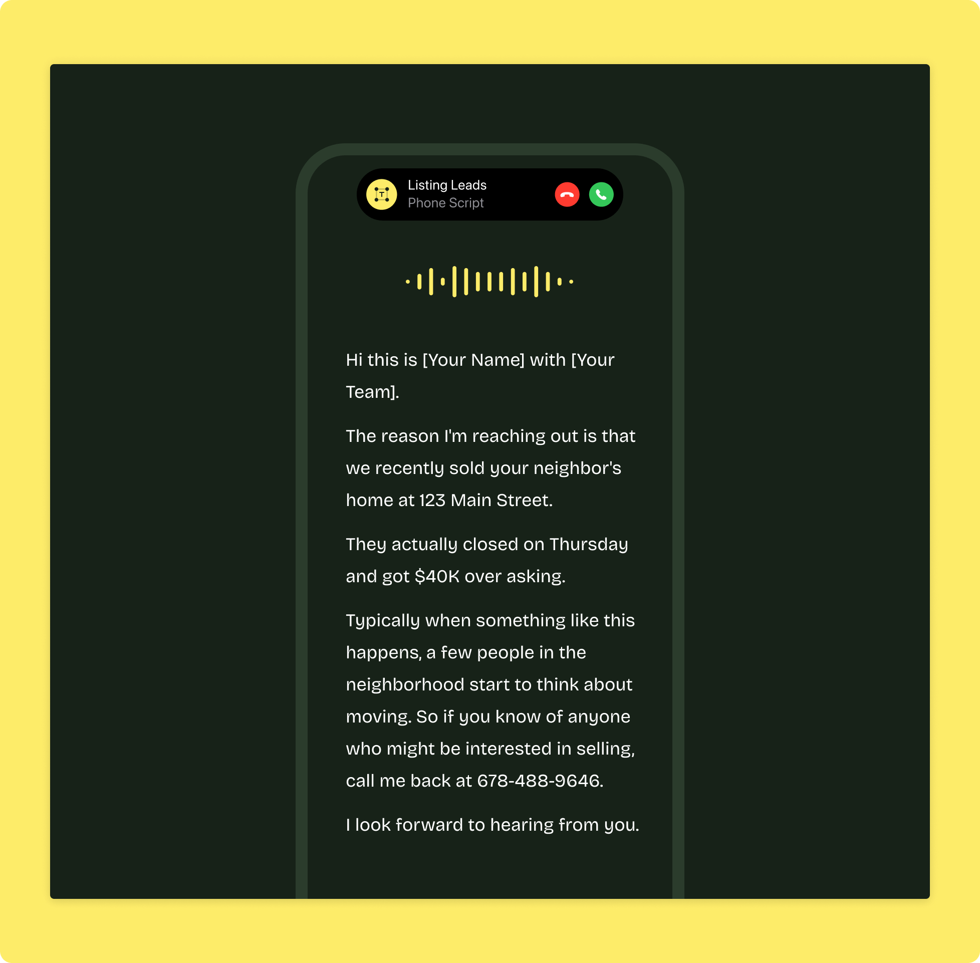This exact script landed Connie Carlson another listing opportunity just after she sold her listing $40K over the asking price.