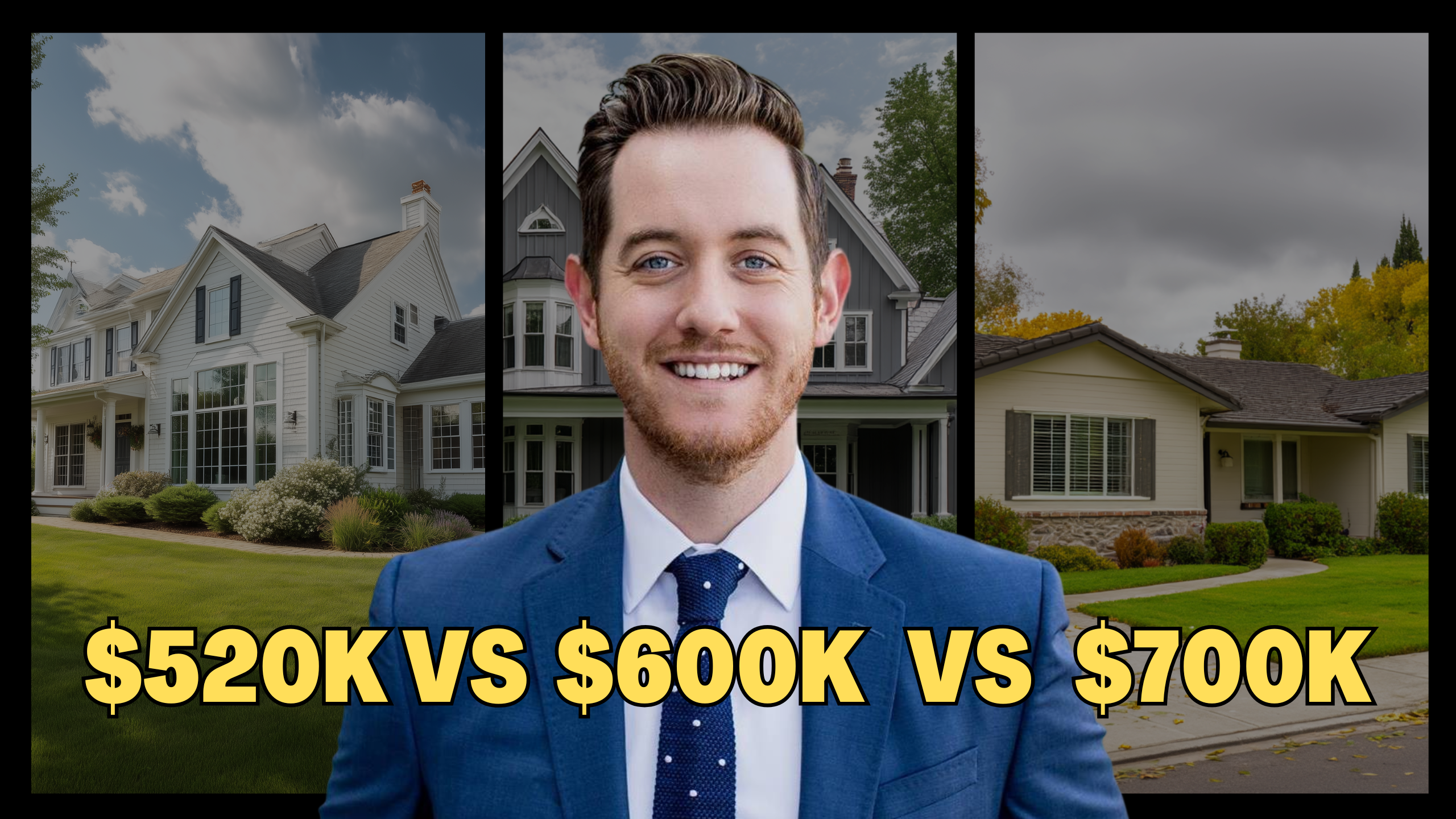 This template tightens the concept even further. Instead of jumping across different cities, you’re stacking three price points inside the same area. Same neighborhood. Same schools. Same lifestyle—until the budget shifts. That contrast is what makes people lean in.