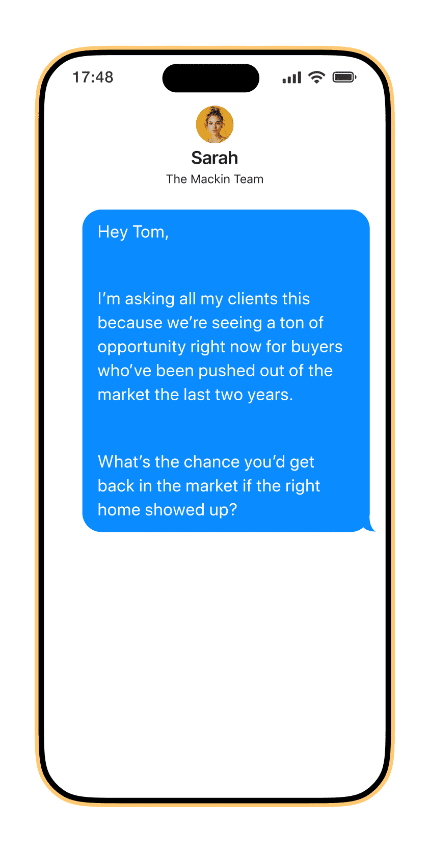 That’s why we built this text around three words I picked up from a Lewis Howes video: What’s the chance? It’s playful, non-threatening, and it bypasses the part of the brain wired to shut down salesy conversations.