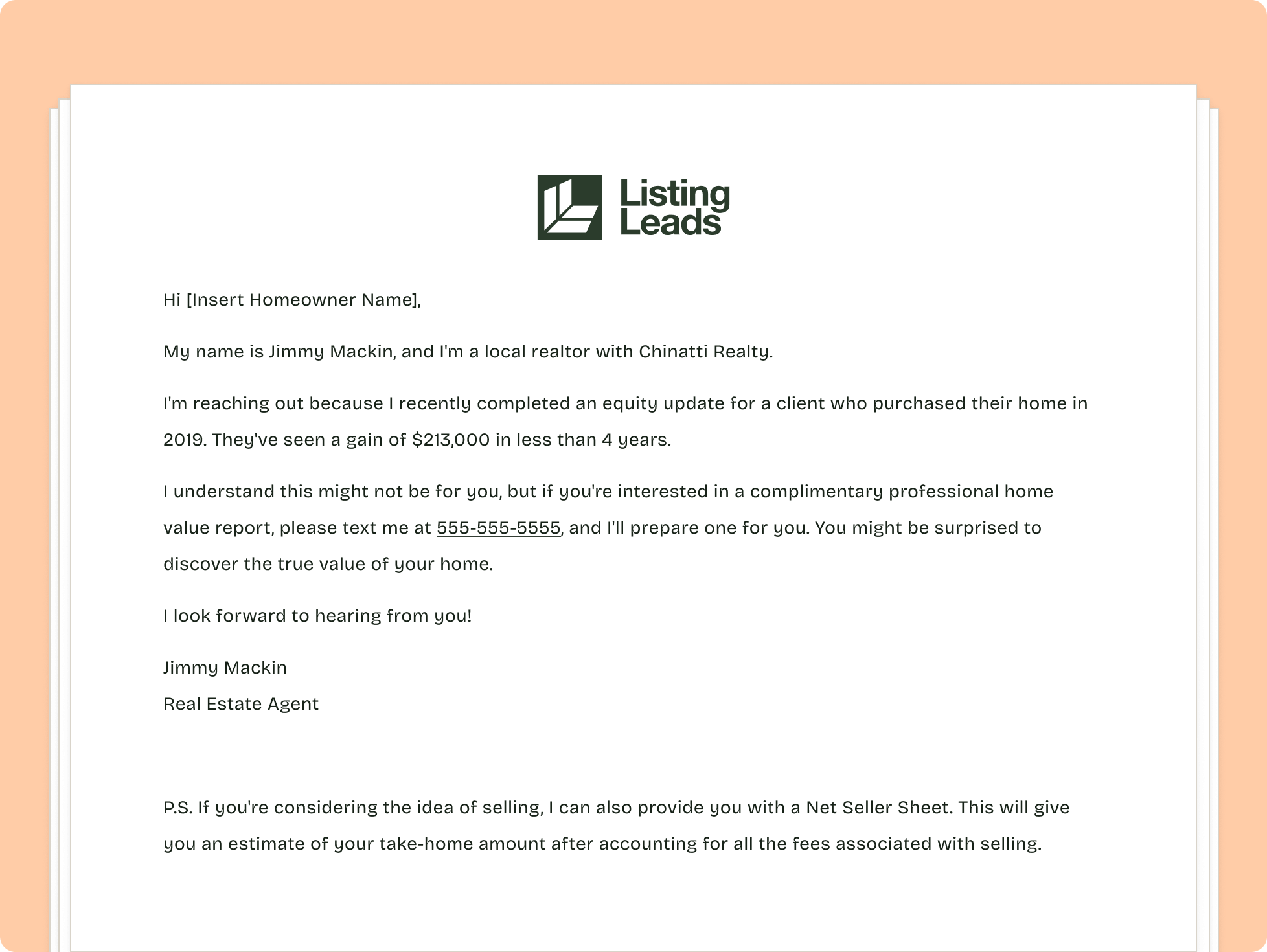 Start with 1,000 homes. Expand if it’s working. Need help pulling the list? Ask your title rep or use tools like PropStream or Breakthrough Broker.