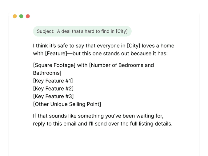 It’s built to surface serious buyers, fast. The subject line alone immediately qualifies your audience. If they open, they’re raising their hand.