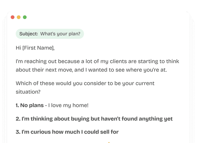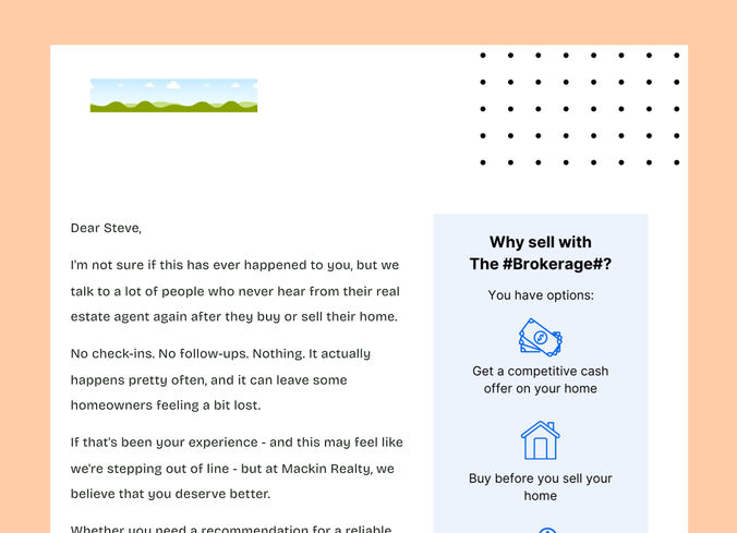If you’ve recently sold a home, use this campaign to showcase your listing. And if you haven’t recently sold a home, use it as an opportunity to showcase homes that have sold recently in a specific neighborhood for the same effect.
