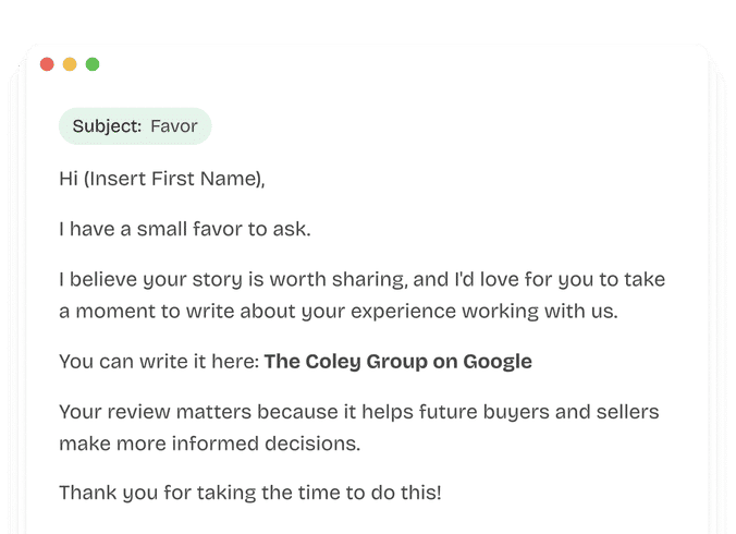 This is an email you can send to your past clients immediately after you help them complete the transaction.