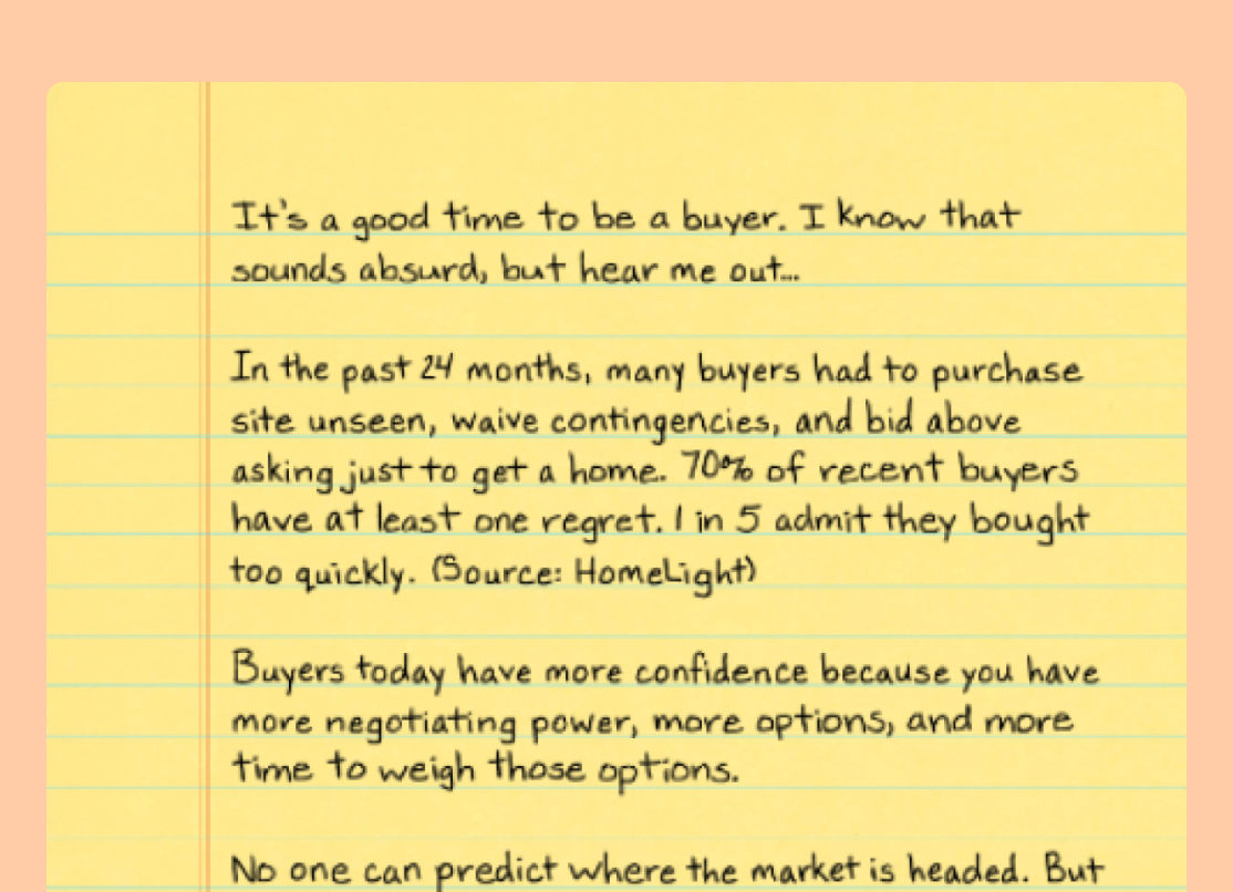 It takes sellers out of “let’s test the market” mode and shows them, clearly and calmly, how that mindset leads to a $23,000 mistake they never saw coming. Use this letter to reframe what smart pricing actually means in today’s market.