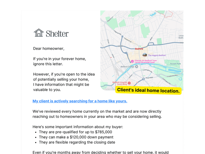 This letter delivers the same results by focusing on what works: a real buyer and a message that feels personal, specific, and low-pressure.