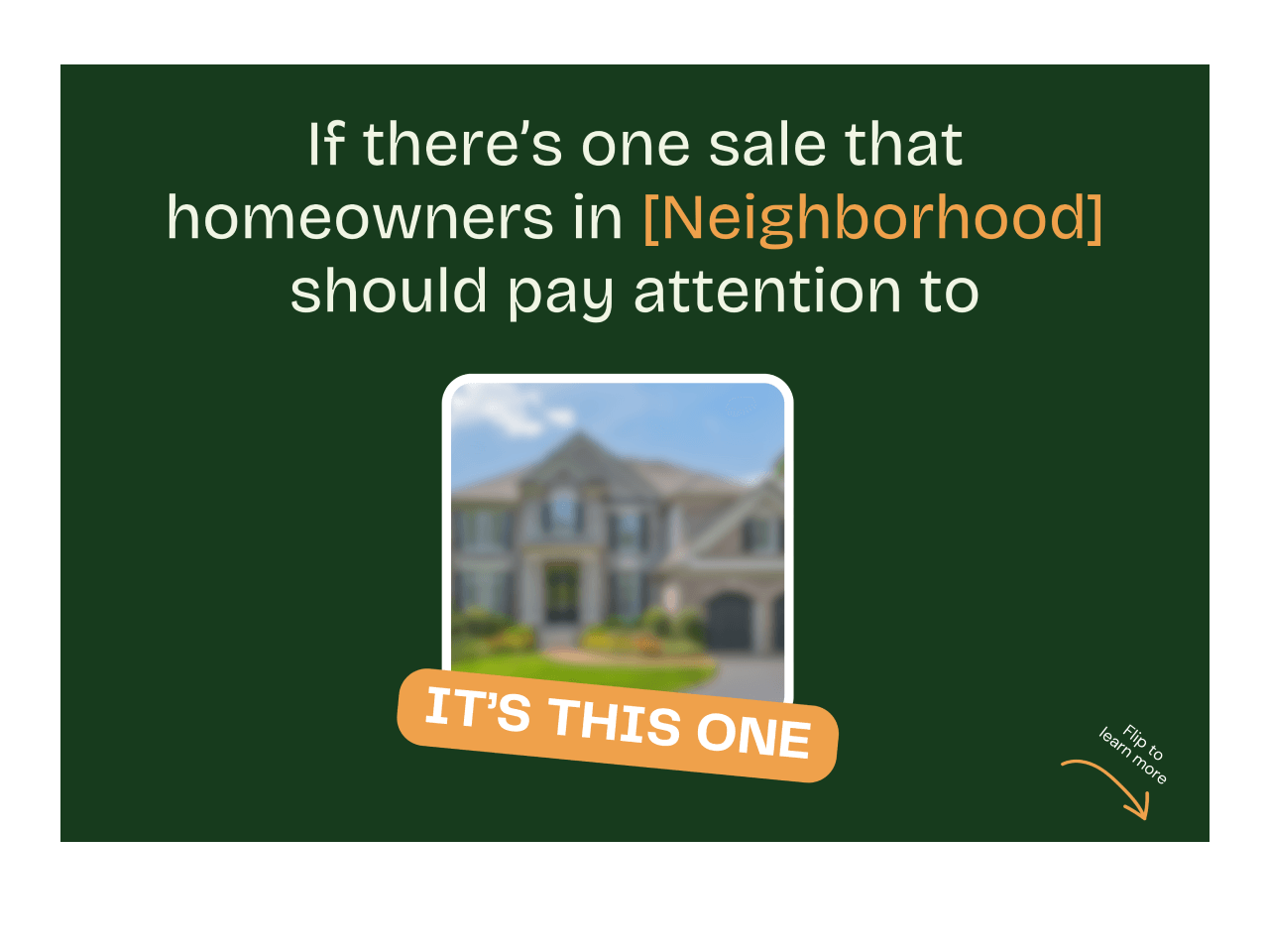 If you’ve recently sold a home, use this campaign to showcase your listing. And if you haven’t recently sold a home, use it as an opportunity to showcase homes that have sold recently in a specific neighborhood for the same effect.