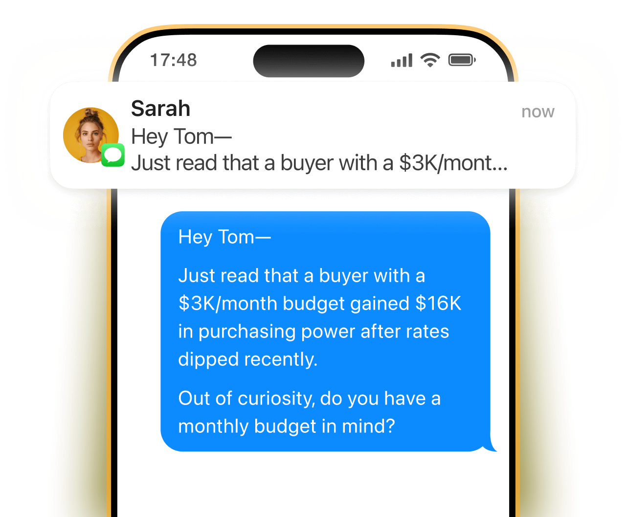 This is where the follow-up magic happens. Yesterday’s email set the stage - it framed the rate drop and got homeowners leaning in. Today, you’re doubling down by sending this text to everyone who opened that email.