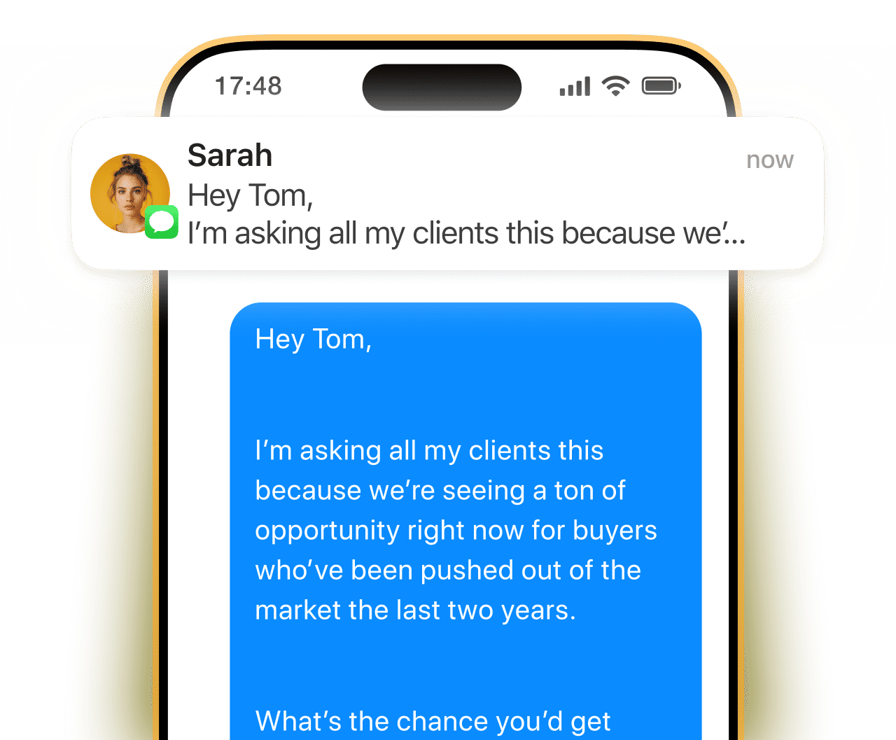 That’s why we built this text around three words I picked up from a Lewis Howes video: What’s the chance? It’s playful, non-threatening, and it bypasses the part of the brain wired to shut down salesy conversations.